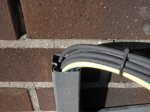 Verlegung der Strangleitung ohne Kantenschutz über die scharfkantige Seite eines Metallkanals.